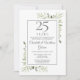 Avec une délicate aquarelle de verdure de jardin campagnard, cette invitation d'anniversaire chic peut être personnalisée avec vos informations de célébration d'anniversaire de mariage de 25 ans, avec un fond argenté au verso. Conçue par Thisisnotme©