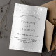 Une invitation mariage moderne, élégante et minimaliste. Arrière - plan à l'aspect argent faux décoré de la poussière de parties scintillant imitation. Personnalisez et ajoutez vos noms et les détails de votre fête. Lettres de couleur noire.