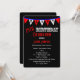Cette grande invitation à la fête de 25e anniversaire célèbre un 25e avec des drapeaux en rouge et blanc sur un arrière - plan noir avec les lettres H A P P Y qui épelent heureux. De plus, un style amusant est utilisé pour le design pour créer un invitation de typographie moderne pour un 25ème anniversaire pour les hommes. Copyright henishouseo