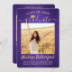 Partagez la joie d'un baccalauréat ou d'un collège et la famille et les amis invitations à célébrer avec ces invitations personnalisées 2 photo violet et or fête. Toutes les images et le libellé sont simples à personnaliser. (CONSEIL EN MATIÈRE DE PLACEMENT D'IMAGE : Une façon simple de centrer une image exactement comme vous voulez est de la rogner avant de la télécharger sur le site Zazzle.) Ce modèle est formaté pour une fête de remise de diplômes, mais peut facilement être customisé comme un invitation ou une carte faire-part à domicile. Il vous suffit de modifier le texte pour y inclure tous les détails de votre choix, tels que les noms des parents, les distinctions spéciales, le titre du diplôme, la citation inspirante préférée, les plans futurs du diplômé ou la nouvelle adresse. S'il n'y a pas de texte non voulu simplement le supprimer. Le design comprend un arrière - plan brossé violet, un casquette de tableau de mortier imitation feuille, une calligraphie manuscrite, une typographie minimaliste moderne et deux photos de votre choix, telles que des images de haut niveau ou des images de la cérémonie de début. Veuillez noter que l'or est imprimé en couleur et non en métal. Ces élégantes cartes de faire-part de remise de diplômes sont un moyen élégant de partager votre fête spéciale avec votre famille et vos amis. Félicitations au diplômé !