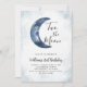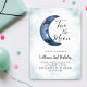 2nd Two The Moon Boy Birthday Party Blue Invitation présente une fête de garçon avec de l'aquarelle représentant un ciel bleu et une fausse lune. Le texte dit, disant "deux la lune." Rejoignez-nous pour cet événement enchanteur !