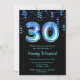 Cette invitation à l'anniversaire élégante et glamour porte le numéro 30 en caractères océaniques avec confettis bleu et vert. Le texte combine écriture manuscrite et polices sans serif modernes pour un look élégant et sophistiqué.