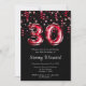 Cette invitation d'anniversaire élégante et glamour porte le numéro 30 en ballons rouges avec des confettis de flocon de neige. Le texte combine écriture manuscrite et polices sans serif modernes pour un look élégant et sophistiqué.