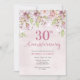 Jolie invitation traditionnelle pour un 30e anniversaire de mariage avec de belles roses et magnolias roses et un fond à motif simple.