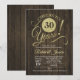 Invitation pour une fête d'anniversaire rustique des 30 ans avec motif de bois brun foncé et doré brillant faux. À la santé de 30 ans ! Parfait pour une célébration élégante.