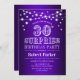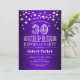 Invitation de fête du 30e anniversaire surprise. Design blanc violet avec guirlandes de fées. Design élégant parfait pour une célébration anniversaire surprise et classe.