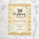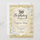 Invitation du 30e anniversaire. Design floral élégant en or et blanc. Comprend des rayures d'or de parties scintillant, des roses blanches, des polices de caractères stylisées et des confettis. Parfait pour une fête d'anniversaire glam.