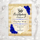 Invitation du 30e anniversaire. Design élégant en or et bleu roi. Comprend des rayures d'or de parties scintillant faux, saphir rose police de script et confetti. Parfait pour une fête d'anniversaire glam.