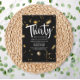 Cette 30ème Invitation d'anniversaire attire l'attention sur un arrière - plan sombre, et est composée de confettis d'or entourant le mot "Trente" qui est écrit dans un script moderne et tendance, juste au-dessus d'un texte personnalisable.