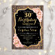 Rustic 30th Birthday Invitation. Design élégant avec motif en bois brun foncé, roses roses rose rousse et or parties scintillant faux. Comprend une police de script et des confettis. Parfait pour une fête d'anniversaire élégante. Customisez avec vos propres détails.