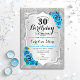 Invitation du 30e anniversaire. Design floral élégant en argent et bleu glacé. Comprend des bandes d'argent faux parties scintillant, des polices de caractères et des confettis stylisés turquoise rose. Parfait pour une fête d'anniversaire glam.