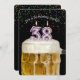 Numéro 38 bougies en tasse de bière avec confetti coloré sur noir pour l'invitation de fête de 38ème anniversaire.