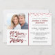 Invitez vos invités avec cette invitation pour les 40 ans de mariage avec une bordure de confettis en rouge rubis avec une typographie rétro indiquant 40 ANS DE PRÉPARATION avec leur année de mariage intégrée dans le design. Ajoutez une photo actuelle, leur portrait de mariage ou une photo de leurs jeunes années pour une invitation amusante avec un look du passé. Contactez le designer si vous souhaitez que ce design soit modifié ou sur un autre produit pour compléter votre ensemble de fête.