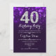 Invitation du 40e anniversaire. Elégant design blanc violet avec fausse parties scintillant argent. Anniversaire adulte. Comprend des diamants et des caractères de script. Hommes ou femmes anniversaire invitation. Parfait pour une fête d'anniversaire élégante. Message-moi si vous avez besoin d'une personnalisation plus poussée.