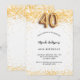 Pour une soirée élégante de 40ème anniversaire. Un arrière - plan blanc chic. Décoré de confettis dorés. Personnalisez et ajoutez un nom et des détails du parti. Le nom est écrit avec un script de style écrit à la main. Numéro 40 avec police de style ballon.