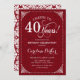 Invitation du 40e anniversaire. Elégant design vintage rouge et blanc avec motif damassé. Fonctionne la police de script. Bravo à 40 ans ! Peut être personnalisé à tout âge! Message-moi si vous avez besoin d'une personnalisation plus poussée.