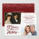 Invitez vos invités avec cette invitation de 40e anniversaire de mariage en rouge rubis avec une typographie rétro indiquant 40 ANS DE PRÉPARATION et intégrant l'année de leur mariage dans le design. Incluez des photos de l'époque et d'aujourd'hui pour une invitation amusante. Les détails de l'invitation à la fête sont au verso.