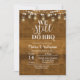 Carte d'invitation anniversaire de mariage à cordes lumineuses, carte d'invitation rustique avec fond rustique et bois.