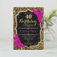 Invitation du 40e anniversaire. Design noir rose élégant avec de l'or de parties scintillant imitation. Comprend un poster de animal de cheetah léopard, des caractères de script et des roses de fuschia rose chaud. Parfait pour une soirée d'anniversaire élégante. Peut être personnalisé dans n'importe quelle année! Message-moi si vous avez besoin d'une personnalisation plus poussée.