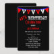 Cette amusante invitation à la fête du 40e anniversaire célèbre 40 en style drapeau avec le noir comme toile de fond pour les drapeaux blancs et rouges sur lesquels le mot H A P P P Y est épelé. Les mots "40th Birthday Celebration" apparaissent sous les drapeaux, tout comme les détails de l'invitation de la fête de 40th. C'est un grand invitation moderne de fête d'anniversaire de drapeau de typographie pour un 40ème anniversaire. Copyright henishouseo