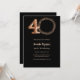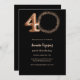 Une invitation photo moderne et design pour une fête de 40e anniversaire. Un arrière - plan noir. Personnalisez et ajoutez les détails de votre fête. Texte en or rose.
