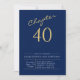 Invitation 40e Anniversaire Or Script moderne bleu