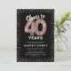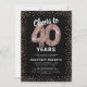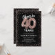 Invitation élégante pour une fête d'anniversaire de quarante ans avec un fond noir stylé qui peut être changé en n'importe quelle couleur, paillettes rose gold, quarante ballons en helium rose gold, et un modèle de texte moderne pour célébrer les 40 ans facile à personnaliser.