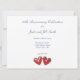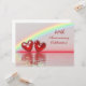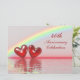 40e invitation anniversaire de rubis avec un arc-en-ciel et deux coeurs rouges rubis brillants flottant sur l'eau. Customisez l'exemple de texte au verso avec vos propres informations pour votre événement.