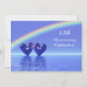 Invitation 45e anniversaire de mariage argent avec un arc-en-ciel et deux cœurs de saphir bleu flottant sur l'eau. Personnalisez le texte au dos avec vos propres informations pour votre événement.