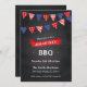 Invitation à 4 juillet soirée barbecue contemporaine dans un jeu de couleurs rouge et bleu avec un arrière - plan de style tableau noir. Parfait pour une fête patriotique !