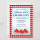 Famille Invitation et amis à votre fête avec cette invitation 4 juillet. Il est décoré de pastèques aquarelles et d'un ciel bleu sur un arrière - plan de buffles rouge et blanc. Facile à personnaliser. Cette invitation festive est parfaite pour n'importe quel thème de célébration du quatrième juillet. Utilisez l'outil de conception pour modifier la taille, le style ou la couleur du texte. Parce que nous créons notre oeuvre, vous ne trouverez pas cette image exacte d'autres designers. Aquarelle originale © Michele Davies.