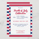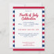 Invitation de célébration 4 juillet moderne. Personnalisez ce modèle d'invitation 4 juillet fête pour votre fête d'indépendance avec vos amis et votre famille. Caractéristiques patriotique rouge blanc et bleu rayures et étoiles.