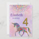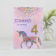 Cette invitation de licorne d'arc-en-ciel d'amusement dans le rose est parfaite pour anniversaire de votre fille le quatrième. Elle adorera simplement la combinaison des confettis arc-en-ciel-colorés et de son âge dans les parties scintillantes intelligentes d'or. La rotation de 4 est une affaire et pour la fille d'anniversaire, elle veut son invitation faite sur commande d'être quelque chose spéciale. Cette licorne magique d'arc-en-ciel rendra sa fête d'anniversaire inoubliable et ses amis aimeront ceci, aussi. Facile à customiser sur l'avant et le dos avec vos propres détails. Changez le style de police et le colorez si vous souhaitez.