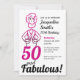 Invitation tes amis à une fête 50 et Fabulous! Célébrez votre amie spéciale Lady avec ce dessin d'une dame, aux cheveux courts, en rose et noir. Personnalisez son nom, la date, le lieu et la RSVP. Conçu, illustré et protégé par copyright par ©Jacqueline Schneider.