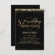 Cette invitation de fête élégante et festive de 8,8 x 12,7 cm pour un 50ème anniversaire de mariage, cinquantième, Golden Wedding Anniversary Party, présente des confettis dorés (simili-feuille d'or) avec les mots "50ème anniversaire de mariage" affichés dans une police de caractères cursive dorée. Le fond est noir, mais peut être changé en n'importe quelle couleur de votre choix. Les détails de la célébration peuvent être facilement personnalisés pour votre événement spécial. Le dos de la carte présente un motif pointillé doré, également sur fond noir, que vous pouvez personnaliser à votre goût. Une façon simple et élégante d'inviter les invités à célébrer un anniversaire de mariage en or.