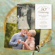 Personnalisez avec votre photo de mariage préférée et les détails de votre célébration spéciale de votre 50e anniversaire de mariage doré en typographie chic. Le verso présente une deuxième photo du couple heureux maintenant. Conçu par Thisisnotme©