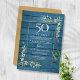 Avec un délicat feuillage de jardin campagnard aquarellé sur un fond en bois rustique bleu, cette invitation d'anniversaire élégante peut être personnalisée avec vos informations de célébration d'anniversaire de 50 ans spéciales, avec un fond doré au verso. Conçu par Thisisnotme©
