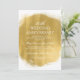 Élégant carton d'invitation pour une fête d'anniversaire de mariage avec un motif de peinture dorée sophistiqué, nom et date personnalisés ainsi que du texte supplémentaire.