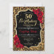 Invitation du 50e anniversaire. Elégant design rouge noir blanc avec parties scintillant d'or. Comprend un poster de animal de guépard léopard, des caractères de script et des roses. Parfait pour une soirée d'anniversaire élégante. Peut être personnalisé dans n'importe quelle année! Message-moi si vous avez besoin d'une personnalisation plus poussée.