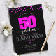 "50 et fabuleux." Possède-le et ouvre-le en 50 avec style! Envoyez ce fabuleux feuillet rose chaud "50", moderne et graphique, et des points sur un arrière - plan noir, 50e anniversaire invitation personnalisée pour une célébration à se souvenir. Des points roses chauds ornent le dos. Des enveloppes de coordination, des étiquettes, des plaques de papier, des serviettes et d'autres articles sont également disponibles. Garanti d’ajouter du style à l’événement de n’importe qui ! Il suffit de taper les informations de la fête avec le nom de la fille d’anniversaire, et vous pouvez facilement personnaliser cette invitation d’anniversaire. S'il vous plaît, envoyez-moi un message avec toute question ou demande.