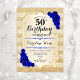 Invitation du 50e anniversaire. Design élégant en or et bleu roi. Comprend des rayures d'or de parties scintillant faux, saphir rose police de script et confetti. Parfait pour une fête d'anniversaire glam.