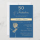 Elégante fleur rose d'or dessin unique en combinaison avec adorable bleu arrière - plan classique et doré côté arrière. Moderne, luxe 50 et fabuleuse invitation 50e anniversaire pour les femmes.