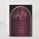 Une élégante invitation au 50e anniversaire. Un arrière - plan noir et bordeaux avec une arche dorée à l'avant.