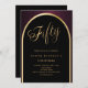 Une élégante invitation au 50e anniversaire. Un arrière - plan noir et bordeaux avec une arche dorée à l'avant.