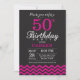 Invitation du 50e anniversaire avec Chevron noir et rose chaud. Tableau de bord. Anniversaire adulte. Homme ou Femmes Anniversaire Invitation. Pour plus de personnalisation, cliquez sur le bouton "Customiser" et utilisez notre outil de conception pour modifier ce modèle.
