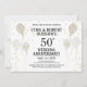 50e Anniversaire de la fête Elegant Gold Invitation. Célébrez le 50e anniversaire de Mariage d'un couple avec cette Elégante Gold Party Invitation. Conçue pour un cinquantième anniversaire, cette carte est décorée de ballons blancs et or sur un arrière - plan blanc, de texte noir, et de confettis dorés. L'envers est un arrière - plan de couleur or avec des ballons blancs. Pour personnaliser, il vous suffit de remplacer l'exemple de nom et d'informations sur l'événement en utilisant notre modèle simple. Assurez-vous d'afficher la bannière de parti correspondante.
