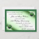 Une conception d'images Digitalbcon avec un thème de couleur émeraude conformément au Gemme traditionnelle d'anniversaire de mariage avec une variété d'images, de formes, de motifs, de styles et de polices personnalisés dans cette invitation "Emerald Wedding Anniversary" unique en son genre. Cette carte d'invitation élégante et attrayante est également livrée avec un design assorti au verso avec lettrage de texte personnalisé pour s'adapter à votre occasion spéciale.