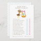 Célébrez votre baby shower avec une touche de charme et de nostalgie avec le jeu Baby Shower Super Simple 5 Petits Canards Baby Trivia Garçon ! Avec de charmantes illustrations inspirées de la chanson Super Simple adorée "5 Little Ducks", ce jeu donne le ton parfait pour un événement amusant et interactif. Les invités s'amuseront à participer à un jeu de trivia sur le bébé tout en étant entourés du thème fantaisiste du canard. Entièrement personnalisable, ce jeu apporte une atmosphère douce et ludique à votre célébration, la rendant vraiment inoubliable.