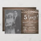 Invitation pour le 5e anniversaire de mariage avec photo personnalisée. Fond en bois rustique. Lumières de chaîne. Noir et blanc. 1er, 2e, 3e, 4e, 5e, 10e, 15e, 20e, 25e, 30e, 35e, 40e, 45e, 50e, 55e, 60e, 65e, 70e, 75e, 80e, toutes années. Anniversaire adulte. Fête d'anniversaire pour femme ou homme. Pour une personnalisation supplémentaire, veuillez cliquer sur le bouton "Personnaliser" et utiliser notre outil de conception pour modifier ce modèle.