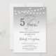 Invitation de célébration du 5e anniversaire du Mariage. Design argenté et blanc avec lumières à cordes féériques, et police de script élégante. Salut à 5 ans ! Peut être personnalisé dans n'importe quelle année de mariage! Message-moi si vous avez besoin d'une personnalisation plus poussée.